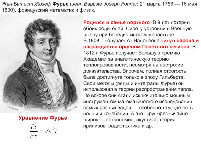Joseph Fourier; 21 марта 1768 — 16 мая 1830), французский