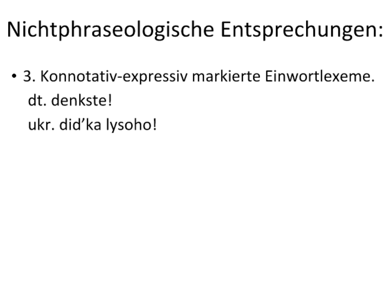 Nichtphraseologische Entsprechungen:3. Konnotativ-expressiv markierte Einwortlexeme.	dt. denkste!	ukr. did’ka lysoho!
