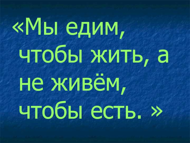 Слайд 12«Мы едим, чтобы жить, а не живём, чтобы есть. »