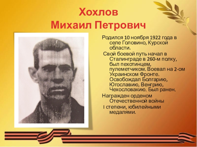 боевой путь начал с 1941 года. Гвардии рядовой. Освобождал Украину,