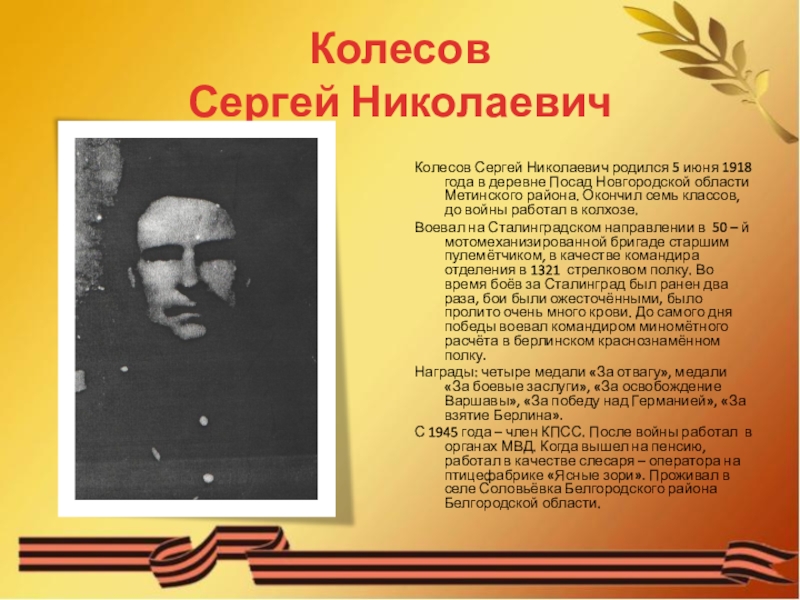 Колесов Сергей Николаевич родился 5 июня 1918 года в
