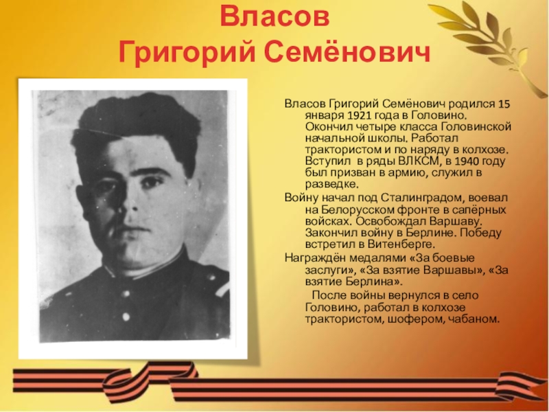 Власов Григорий Семёнович родился 15 января 1921 года в