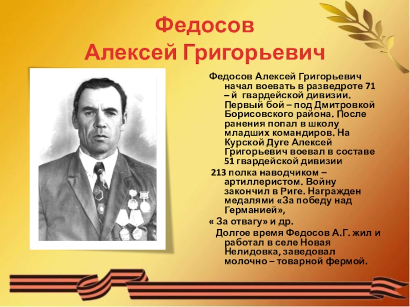 Федосов Алексей Григорьевич начал воевать в разведроте 71 –