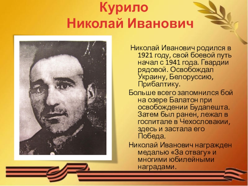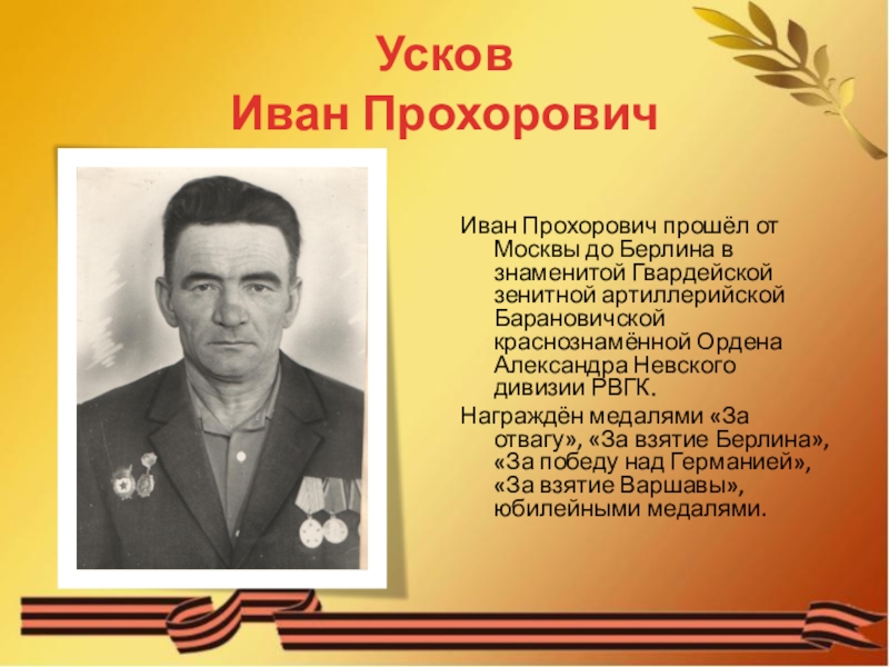 Иван Васильевич родился в 1925 году. Ушёл воевать