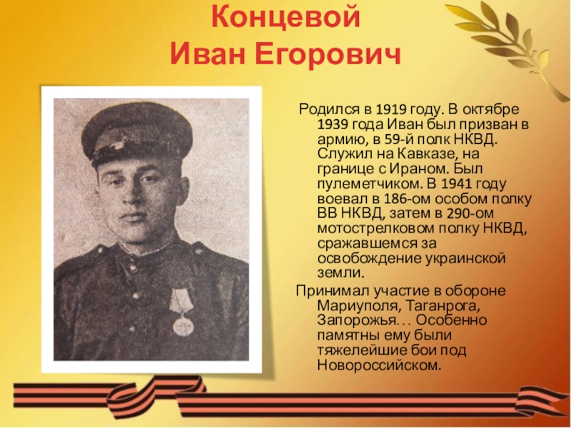 Иван был призван в армию, в 59-й полк НКВД. Служил