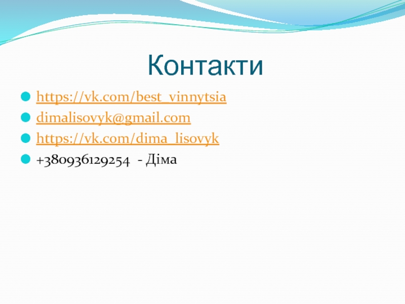 Контактиhttps://vk.com/best_vinnytsiadimalisovyk@gmail.com	https://vk.com/dima_lisovyk+380936129254 - Діма