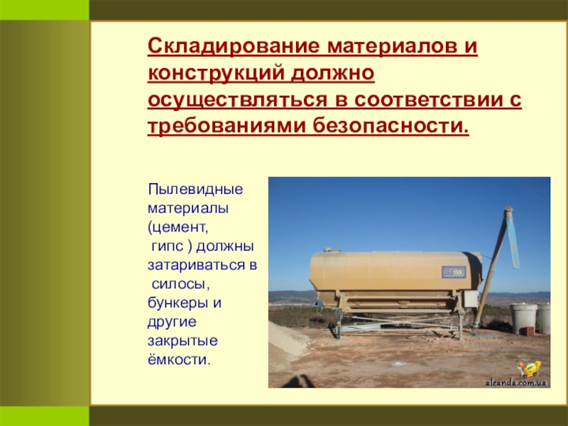 Слайд 25Складирование материалов и конструкций должно осуществляться в соответствии с требованиями