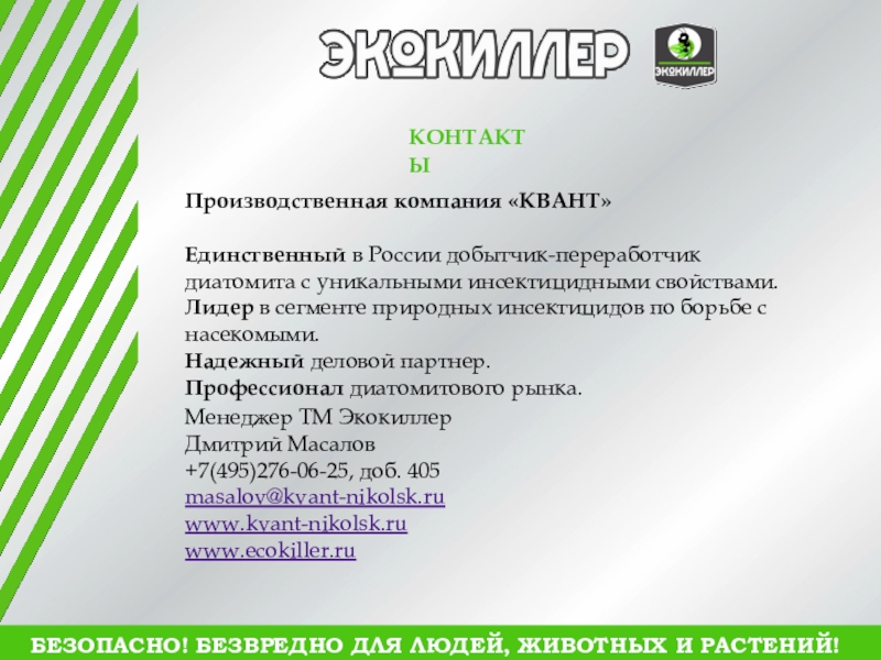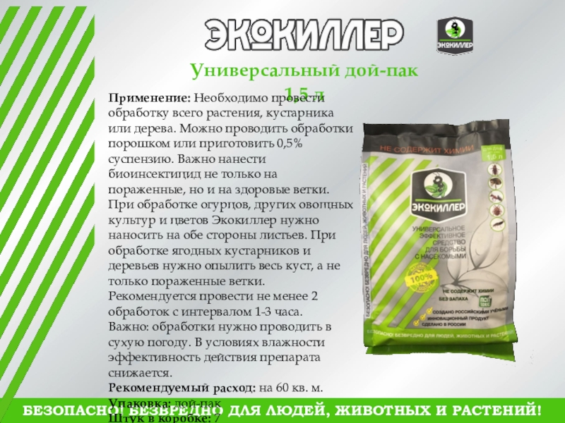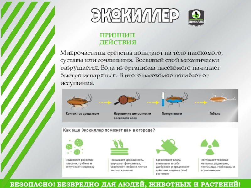 Слайд 1БЕЗОПАСНО! БЕЗВРЕДНО ДЛЯ ЛЮДЕЙ, ЖИВОТНЫХ И РАСТЕНИЙ!