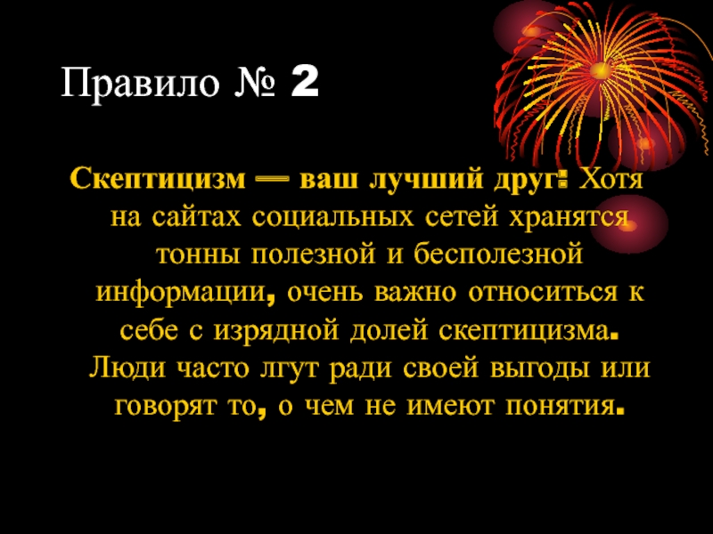 Правило № 2Скептицизм — ваш лучший друг: Хотя на сайтах социальных сетей хранятся тонны полезной и бесполезной
