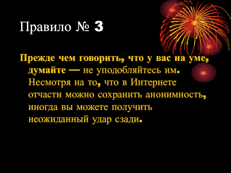 Правило № 3Прежде чем говорить, что у вас на уме, думайте — не уподобляйтесь им. Несмотря на