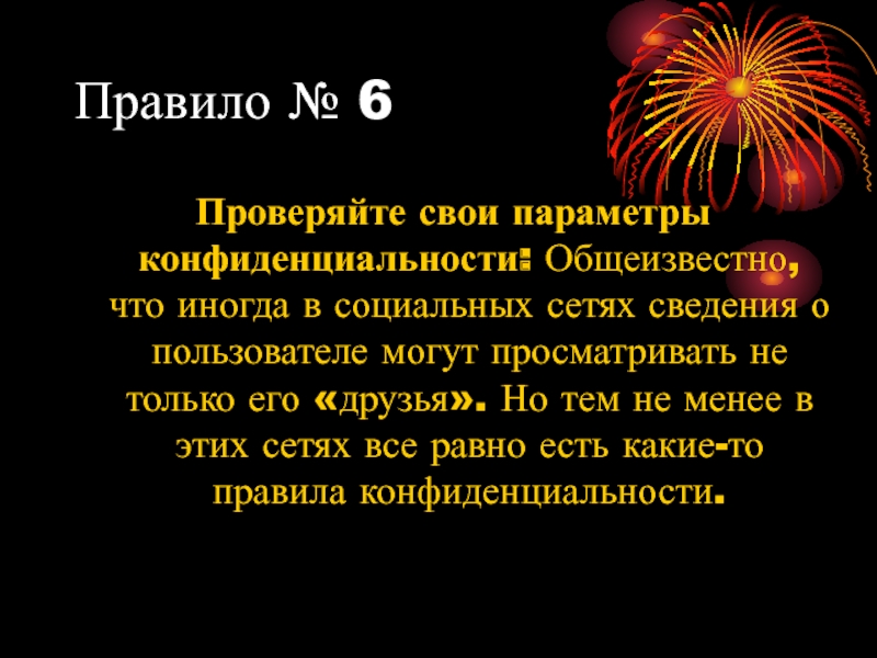 Правило № 6Проверяйте свои параметры конфиденциальности: Общеизвестно, что иногда в социальных сетях сведения о пользователе могут просматривать
