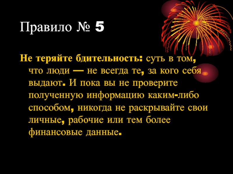 Правило № 5Не теряйте бдительность: суть в том, что люди — не всегда те, за кого себя