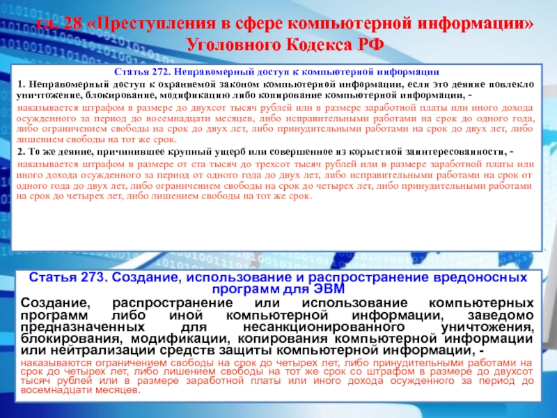 Статья 273. Создание, использование и распространение вредоносных программ для ЭВМ