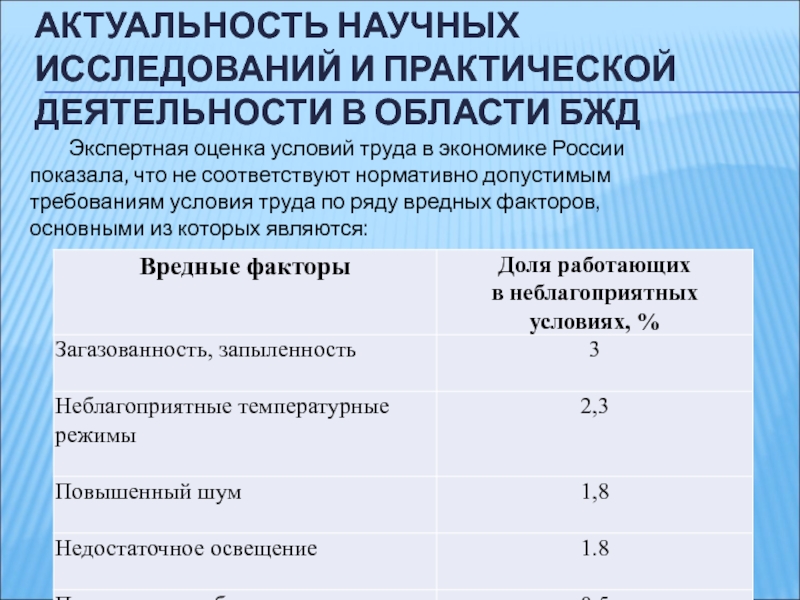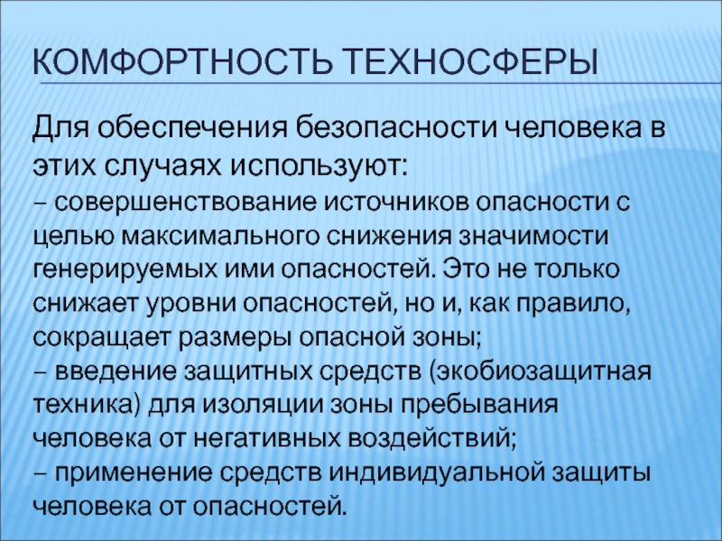 деятельности, комфорта и личной безопасности в интенсивно развивающейся техносфере сопровождается