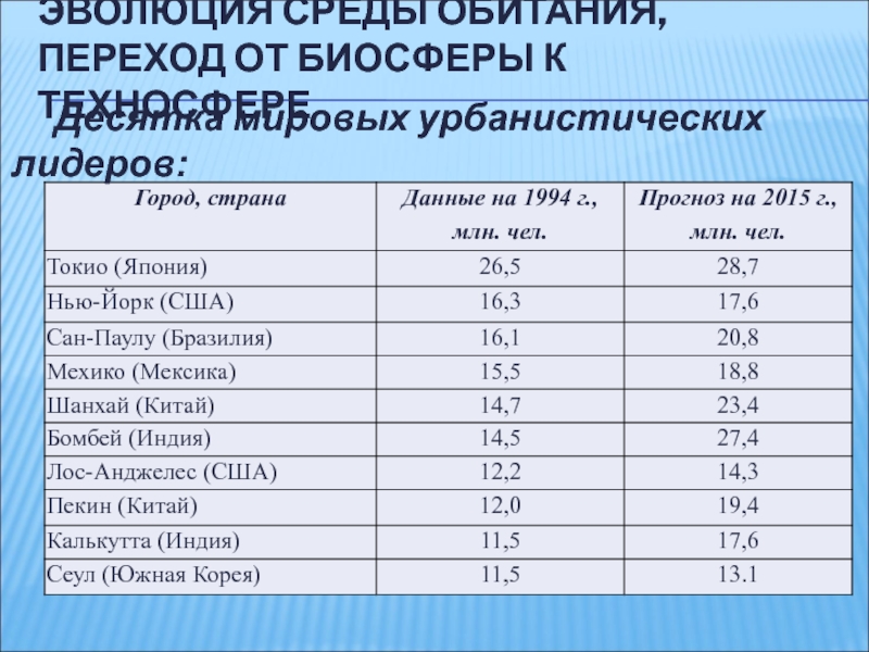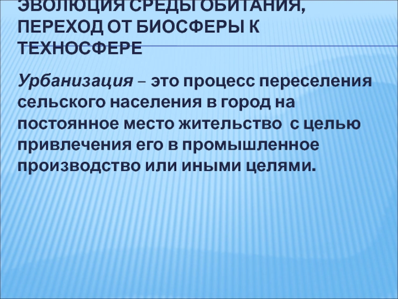 Слайд 10Эволюция среды обитания, переход от биосферы к техносфере