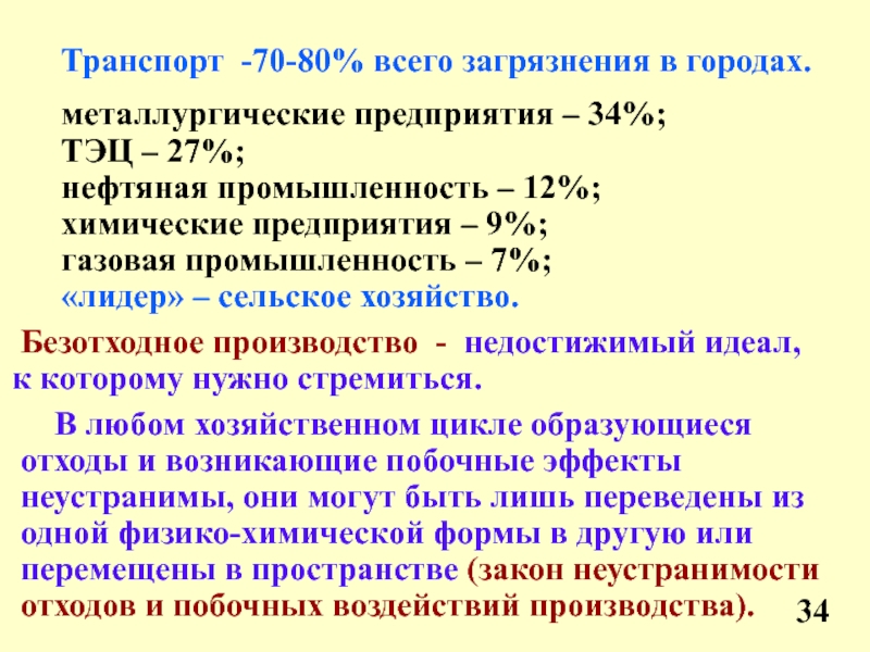 Слайд 34 В любом хозяйственном цикле образующиеся отходы и возникающие