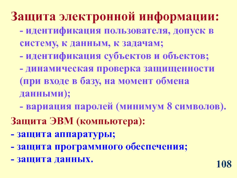 Защита ЭВМ (компьютера): - защита аппаратуры; - защита программного обеспечения; - защита данных.
