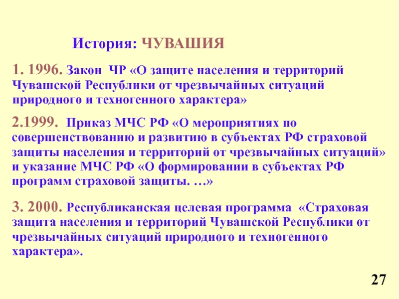 1996. Закон ЧР «О защите населения и территорий Чувашской Республики от чрезвычайных ситуаций природного и техногенного характера»