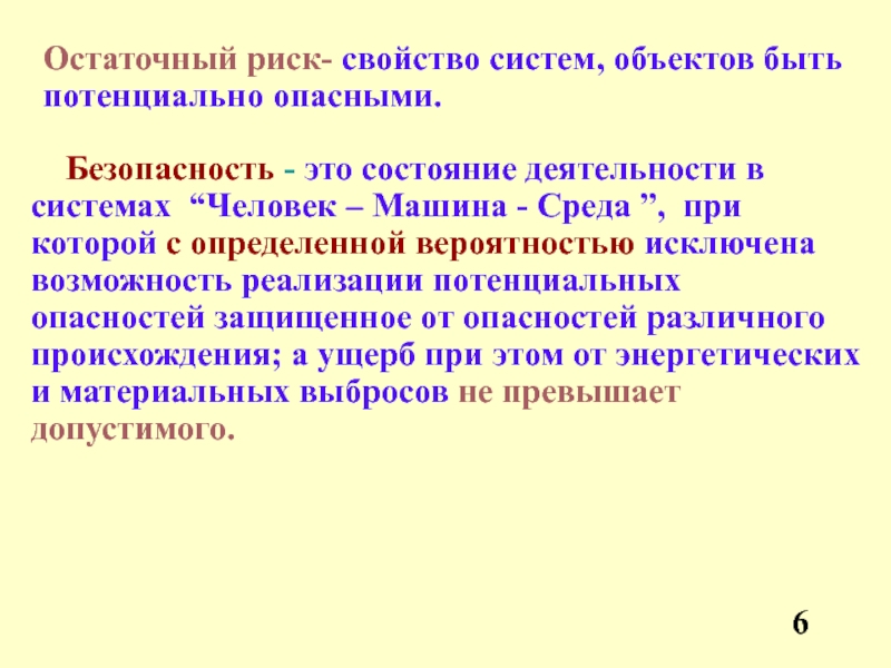 Остаточный риск- свойство систем, объектов быть потенциально опасными.
