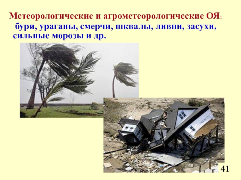 по происхождению: 1) природные; 2) техногенные; 3) экологические; 4)смешанные; по локализации: 5) литосферные ( землетрясение, извержение вулканов); 6) гидросферные; 7) атмосферные (озоновые дыры); 8) космические (солнечные циклы).