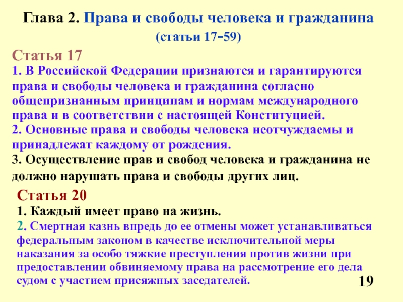Глава 2. Права и свободы человека и гражданина (статьи 17-59)