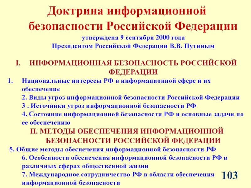 Слайд 103Доктрина информационной безопасности Российской Федерации