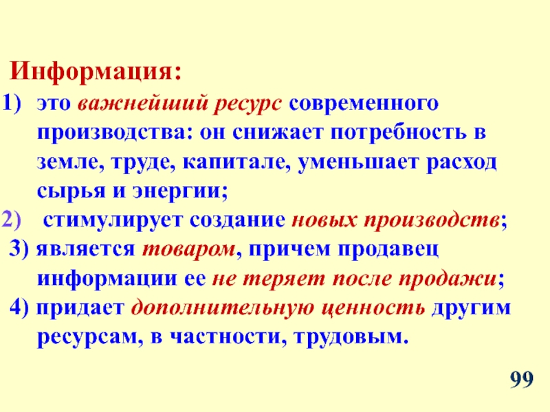 4) придает дополнительную ценность другим ресурсам, в частности, трудовым.