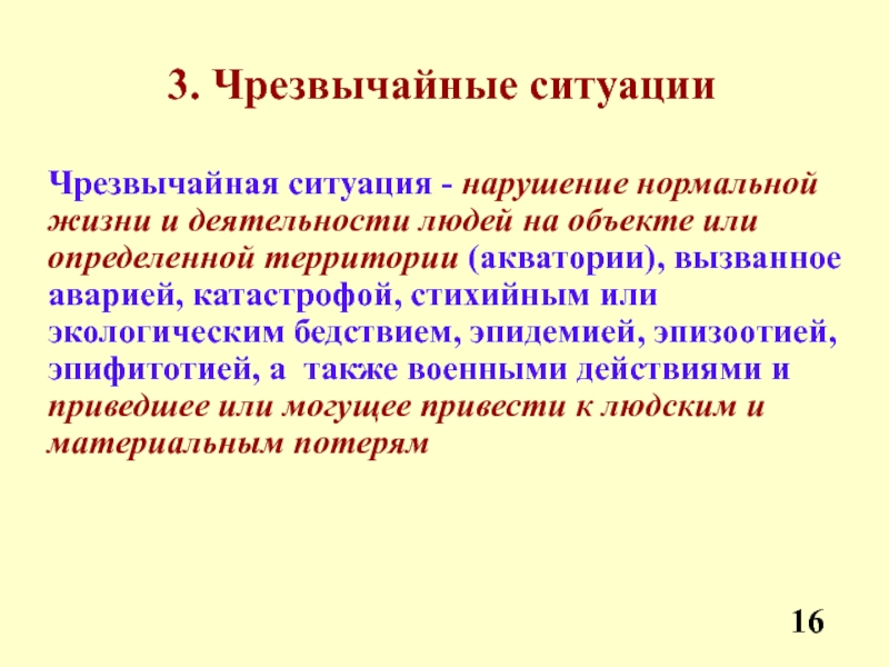 Чрезвычайная ситуация - нарушение нормальной жизни и деятельности