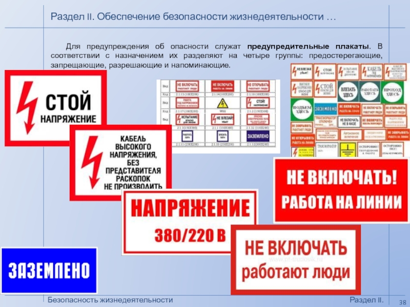 опасности служат предупредительные плакаты. В соответствии с назначением их разделяют