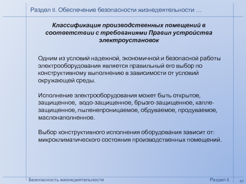 экономичной и безопасной работы электрооборудования является правильный его выбор по конструктивному выполнению в зависимости от условий окружающей среды.