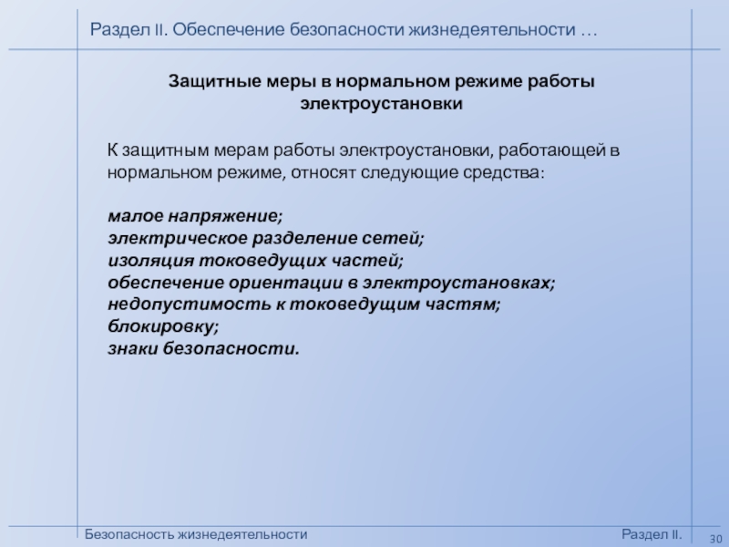 Раздел II. Обеспечение безопасности жизнедеятельности …