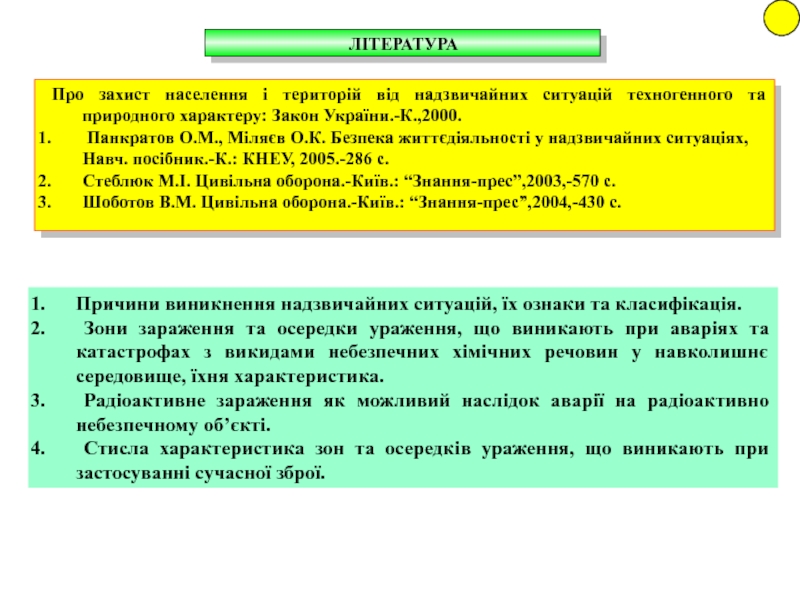 Панкратов О.М., Міляєв О.К. Безпека життєдіяльності людини у надзвичайних ситуаціях, Навч. посібник. - К.: КНЕУ, 2005. - 286 с.