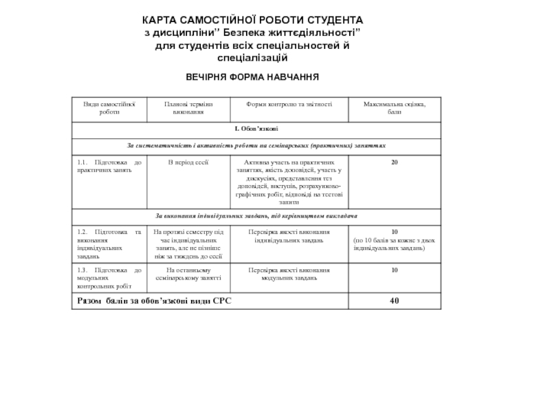 Слайд 4КАРТА САМОСТІЙНОЇ РОБОТИ СТУДЕНТА