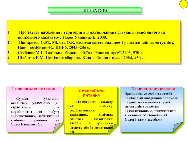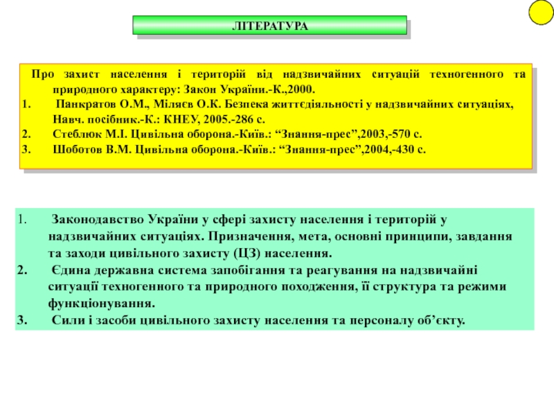 Стеблюк М.І. Цивільна оборона. - Київ.: “Знання-прес”, 2003, - 570 с.