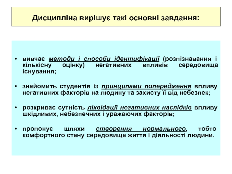 попередження впливу негативних факторів на людину та захисту її від небезпек;