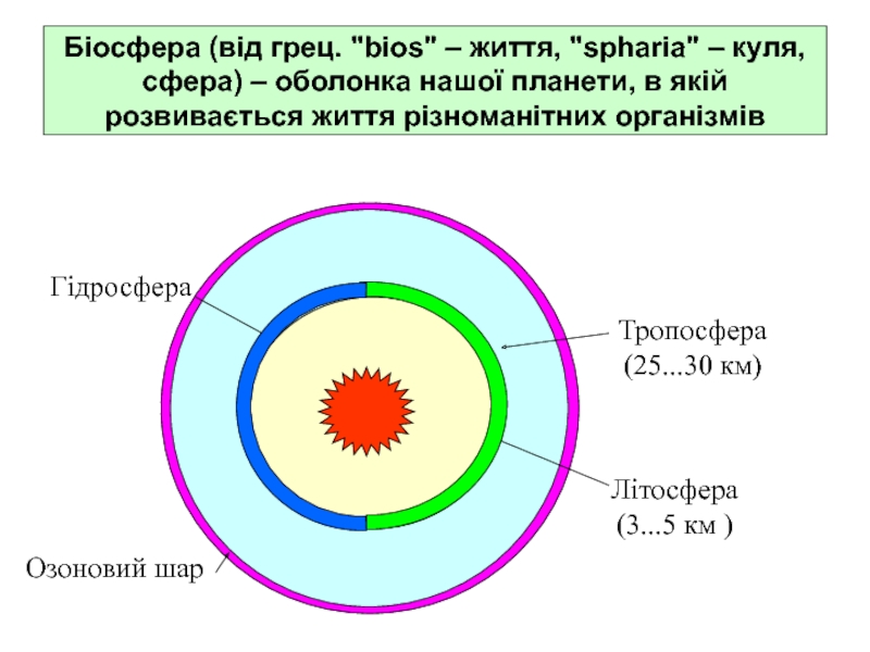 Слайд 8Біосфера (від грец. "bios" – життя, "spharia" – куля, сфера)