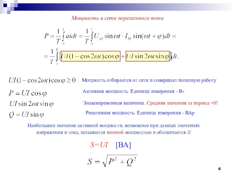Среднее значение для мощности за период времени Т можно вычислить формулой: