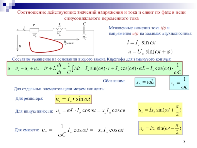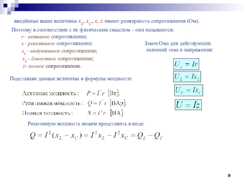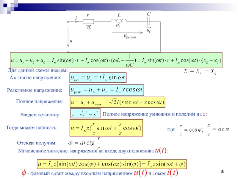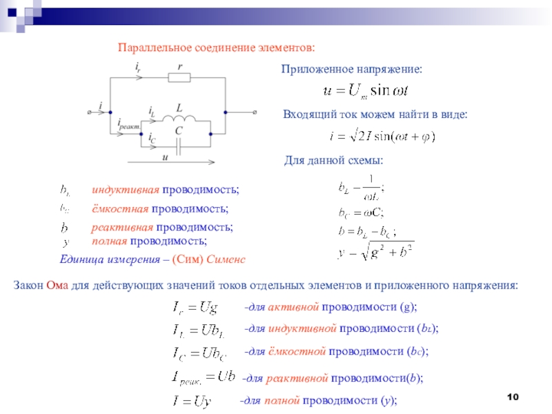 Закон Ома для действующих значений токов отдельных элементов и приложенного напряжения:
