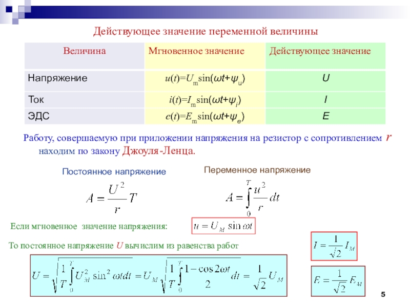 Для оценки периодически изменяющегося величин (напряжение, ЭДС и ток) используется и понятие «действующее значение».