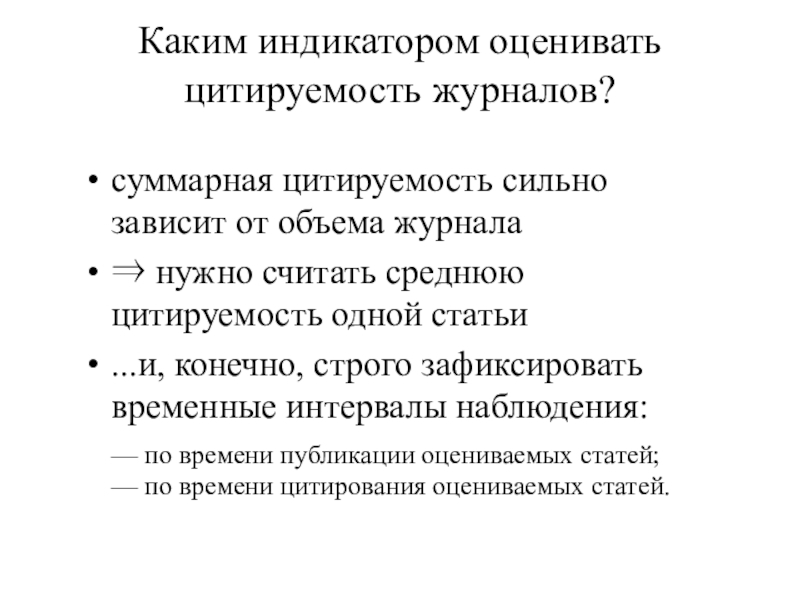 Слайд 4суммарная цитируемость сильно зависит от объема журнала