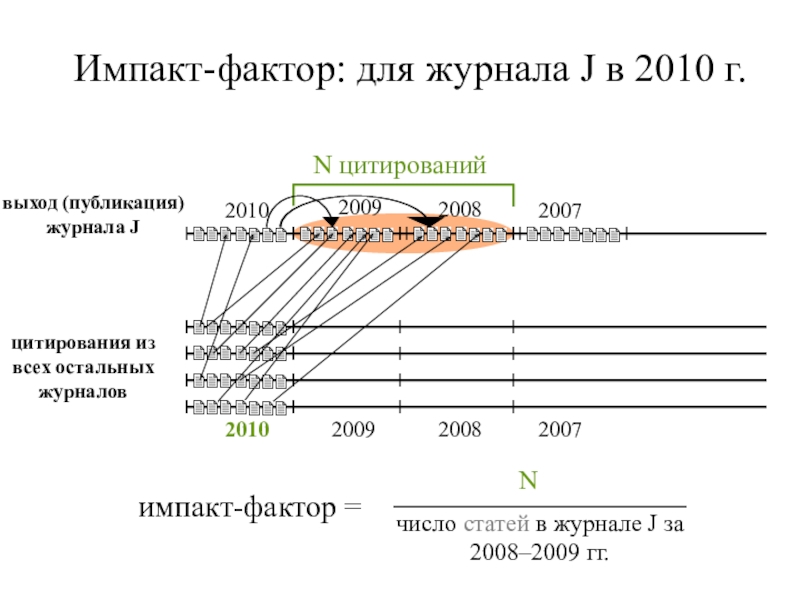 Слайд 5Импакт-фактор: для журнала J в 2010 г.