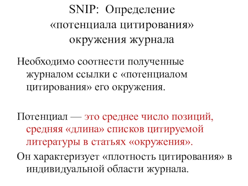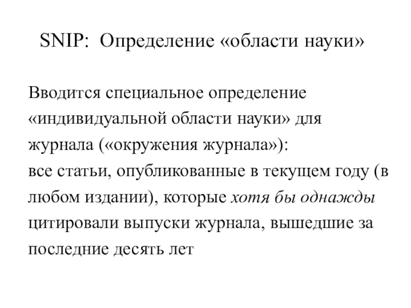 Слайд 11Вводится специальное определение «индивидуальной области науки» для журнала («окружения журнала»):