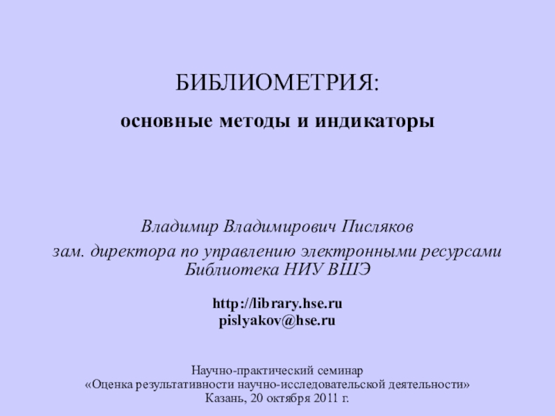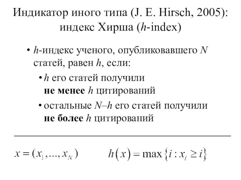 Индикатор иного типа (J. E. Hirsch, 2005): индекс Хирша (h-index)