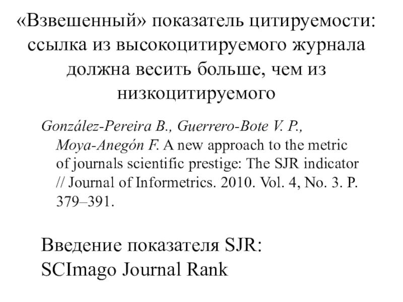 approach to the metric of journals scientific prestige: The SJR indicator // Journal of Informetrics. 2010. Vol. 4, No. 3. P. 379–391.