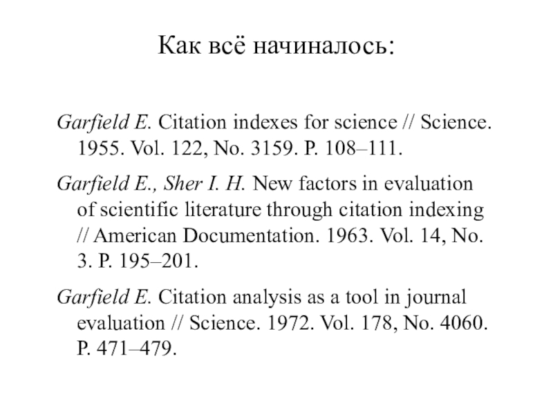 Слайд 3Garfield E. Citation indexes for science // Science. 1955. Vol.