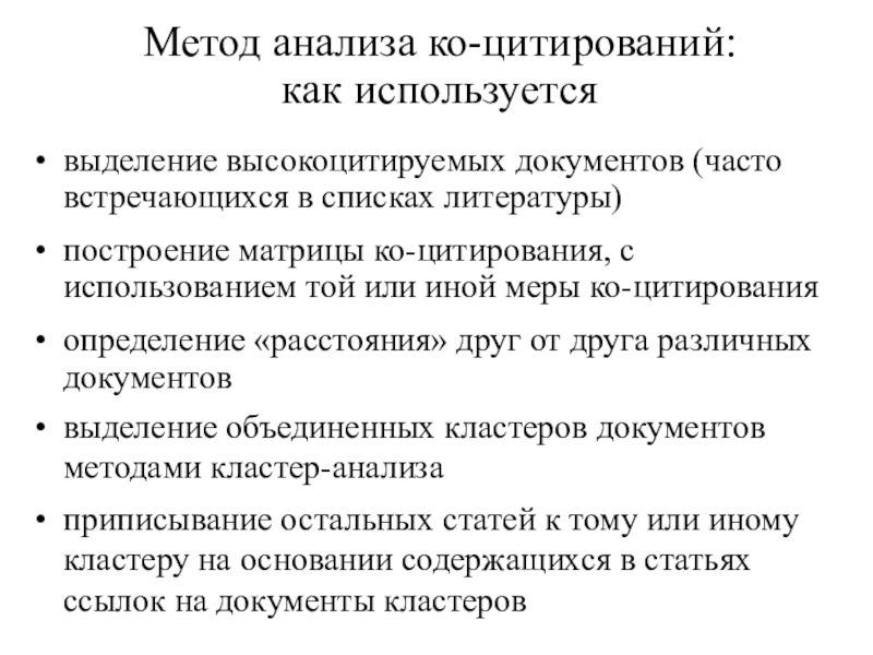 построение матрицы ко-цитирования, с использованием той или иной меры ко-цитирования