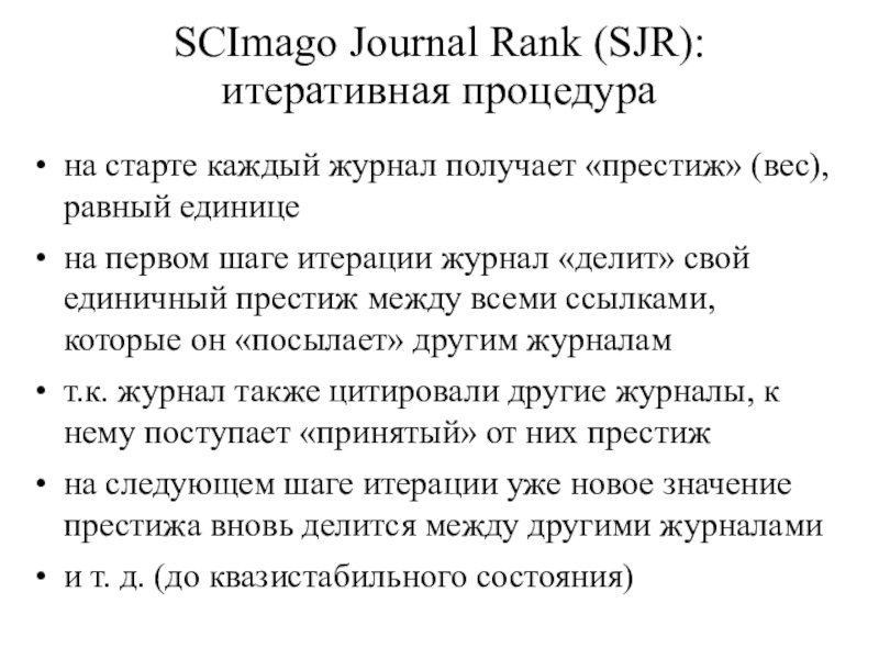 на следующем шаге итерации уже новое значение престижа вновь делится между другими журналами