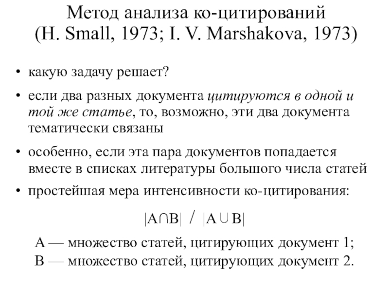 (H. Small, 1973; I. V. Marshakova, 1973)