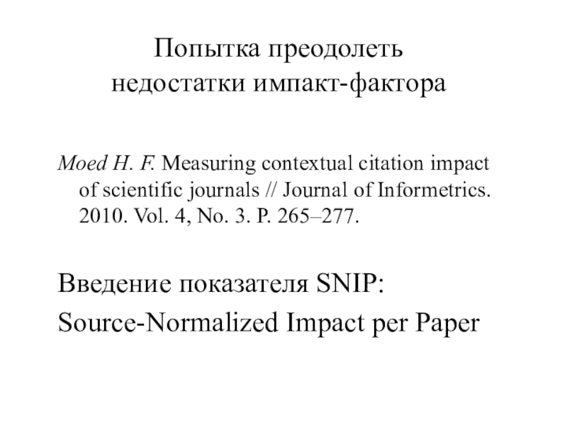 factors in evaluation of scientific literature through citation indexing // American Documentation. 1963. Vol. 14, No. 3. P. 195–201.
