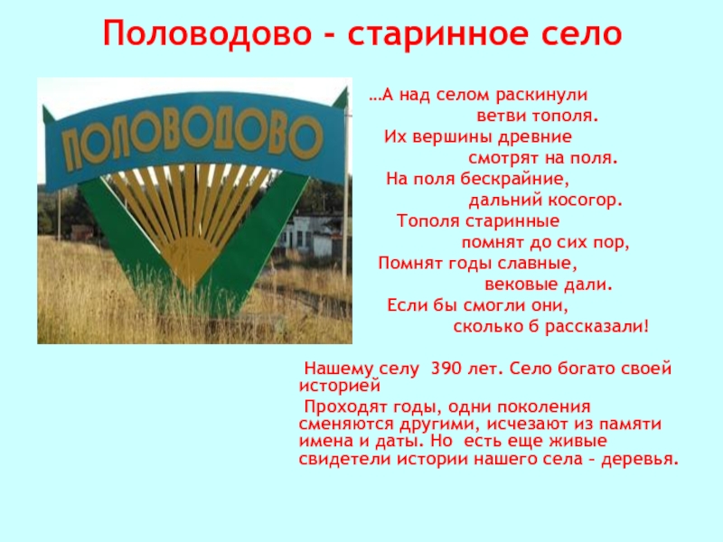 история, а мы должны знать историю своего села, сохранить добрую память